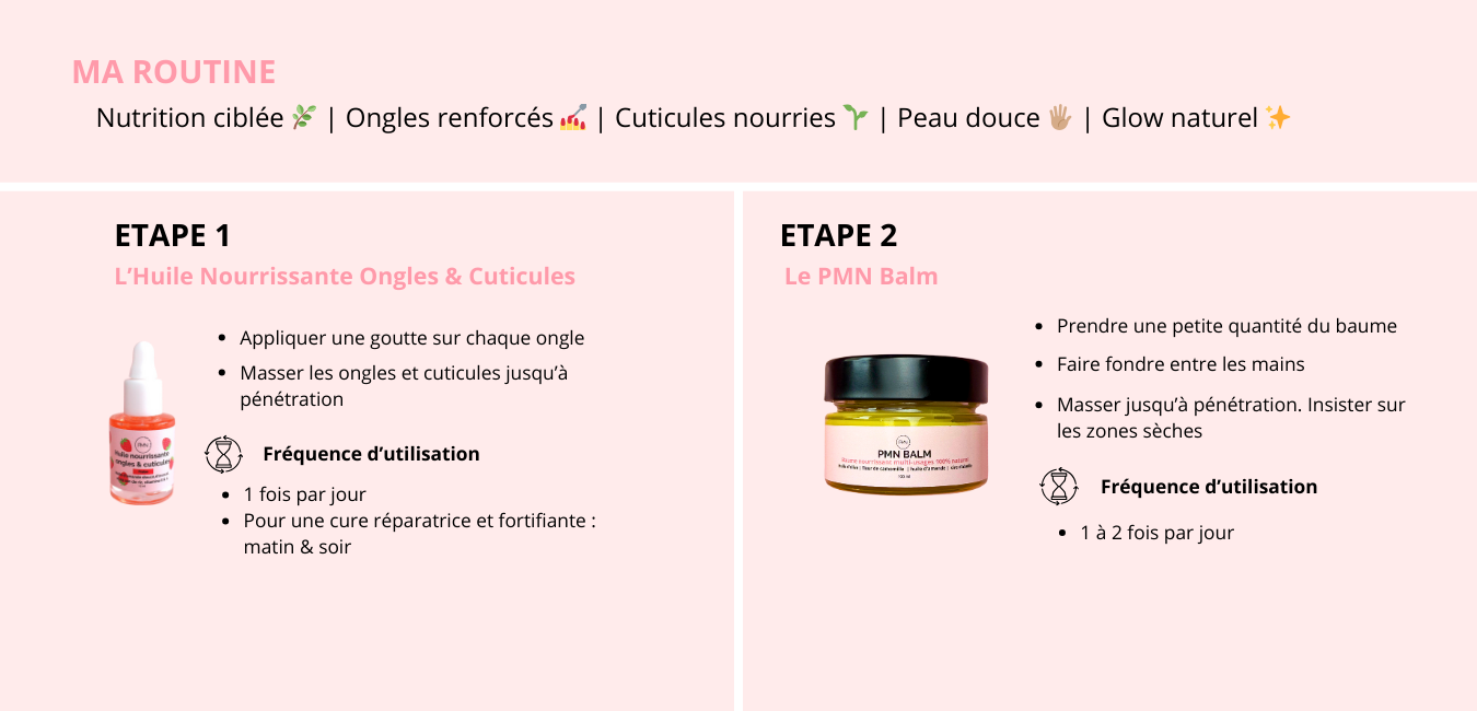 Vos produits : L'huile nourrissante ongles & cuticules (parfum au choix) + Le PMN Balm